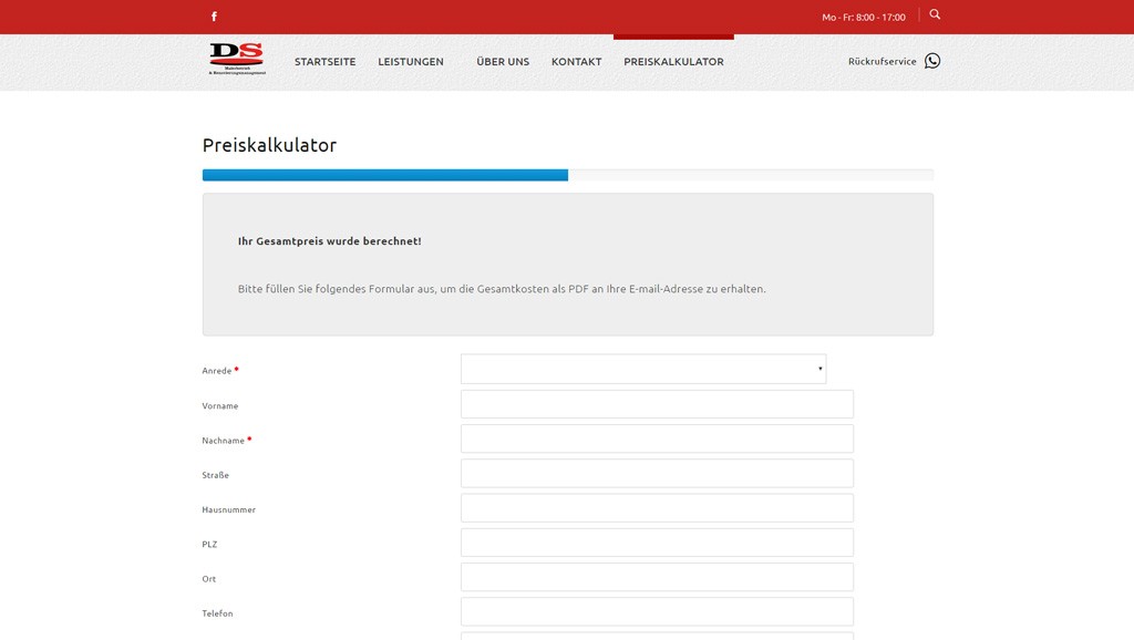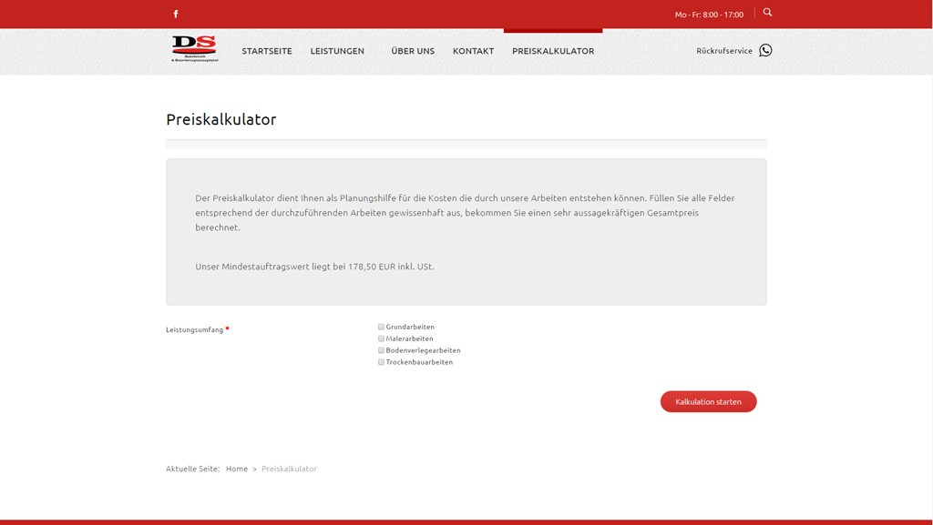 For the painting company DADSON we have developed an online price calculator and integrated it into the website.